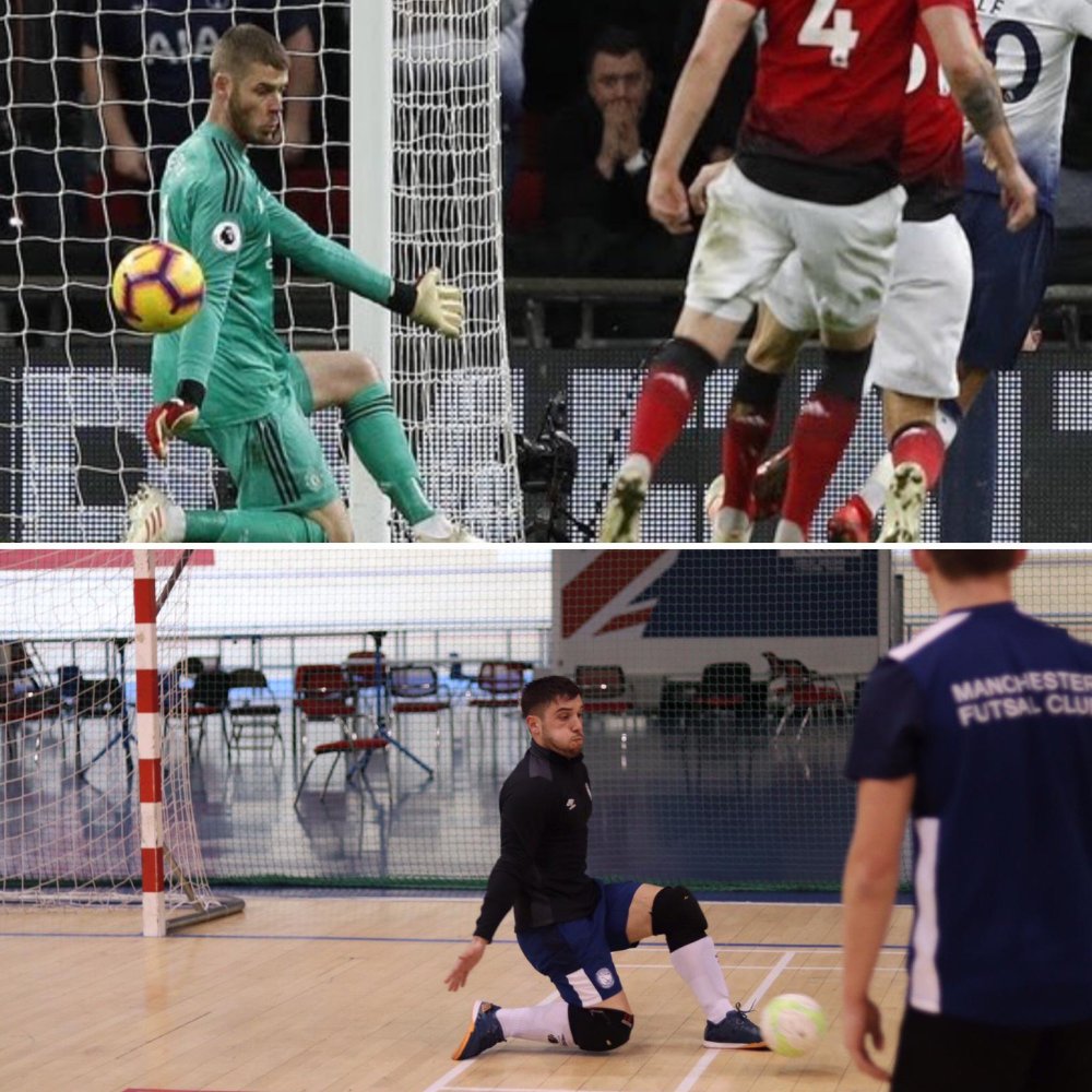 I’ve always had a practical approach to the art of Goalkeeping, as we goalkeepers are aware of the significance of the style and adaptation in relation to the anatomy. The style and mental approach will vary between tall, big goalkeepers and short, smaller goalkeepers especially when it comes to making saves. I will concentrate exclusively on commenting on low angled shots and saves for the purpose of this blog as it centred around Futsal Goalkeeping. For those who are not familiar with the term, futsal goalkeeping is a discipline from the 5 – a side indoor football game where the goalkeeper guards a 2m × 3m goalpost. The rules applied to futsal goalkeeping is completely different to the regular 11 – a side game goalkeeping but we are going to focus mainly on the style of goalkeeping. The first observation one makes regarding futsal goalkeeping is the considerably small goal area which the goalkeeper covers with far less motion at any starting point. This has a considerable effect on the goalkeeping skill set and the knowledge of what type of skills are required that are practical to the game. The Block Save (.. standing in the “K” position while keeping the arms low apart and the body upright) and the Lateral Split Save ( .. doing a split to block a shot with a foot outstretched instead of making a reflex low dive save ) are the most commonly deployed by the goalkeeper and what we’ve witness recently is the introduction of these saves ( particularly the Lateral Split Save) in mainstream football.