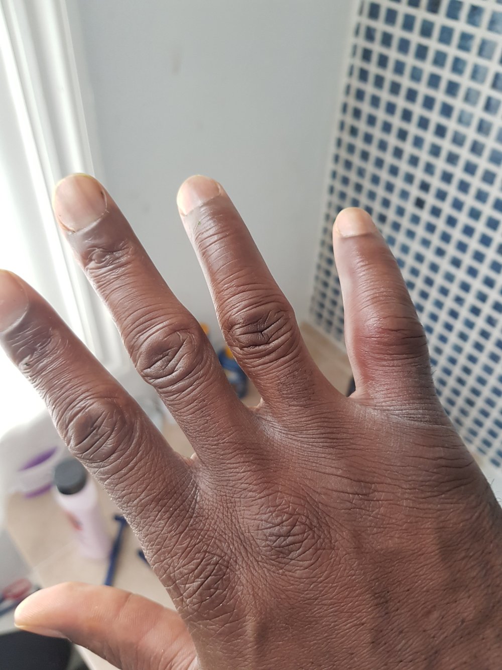 This is a picture of my dislocated pinkie that occurred during warmups before the game. The next finger was already damaged at the top joint from football training several weeks ago and still hasn’t fully healed. During the warm up routine, I got the young reserve Goalkeeper Randy Tieku to serve me some shots to body and ground. One particular shot was low to ground to my right, I reacted to it but wasn’t quick enough to get my hands behind the ball. The velocity of the shot was enough to clip my pinkie off it’s middle socket, which was an ugly sight to behold. This was the first time EVER in my 34 years of Goalkeeping I’ve had to endure the horror and agony of a dislocated finger. It was flopping out of the socket and for a brief moment the thought of ripping the finger off sounded like a good idea as I wasn’t going to back down due to a dislocated pinkie.. as crazy as that might sound, well we goalkeepers are crazy by reputation 😂.. but that didn’t happen and after consultations with management about my wellbeing, I was allowed to start this crucial game, as we’ve suffered 4 straight losses prior to this game. I was determined to play with the “Superman Mentality”.